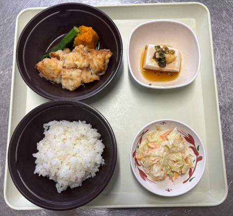入院中のお食事については、医師の指示に基づき患者様毎の病態に応じ、安心して召し上がっていただけるよう努めております。